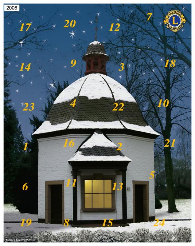 Zum siebzehnten Mal veranstaltet der Lions Club Pulheim in diesem Jahr seine Adventsgewinnkalender-Aktivität. Die Auflage beläuft sich in diesem Jahr auf 5.000 Stück. Der Verkaufspreis beträgt, wie seit Beginn der Activity, 5 Euro pro Stück. Im Jahre 2001 starteten die Lions diese Aktion mit 3.000 Kalendern, die fast alle erkauft werden konnten. Durch die immer mehr gestiegene Bekanntheit und Akzeptanz fühlten die Lions sich ermutigt die jährliche Stückzahl bis heute auf 5.000 Stück zu steigern.