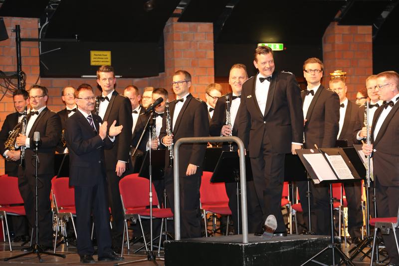 Nach der Pause zeigte sich das Orchester von einer ganz anderen Seite. Mit dem Medley „Merci! Udo Jürgens“ spielte es in Form einer Big Band eine klangvolle Hommage an den 2014 verstorbenen Musiker. In diesem Teil konnten nun sämtliche Mitglieder des Musikkorps ihr Können in zahlreichen Soloparts präsentieren und die Zuhörer erfreuen. Es folgte mit dem Regimentsmarsch „Unter dem Doppeladler“ erneut ein Exkurs in die Militärmusik des 19. Jahrhunderts.